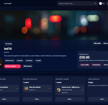We’ve refined the fan side of the platform to make everything feel more intuitive. Pages load faster, navigation is smoother, and it’s easier to move between creators, subscriptions, and content. The focus is simple: less clutter and more attention on the creators you’re here for.