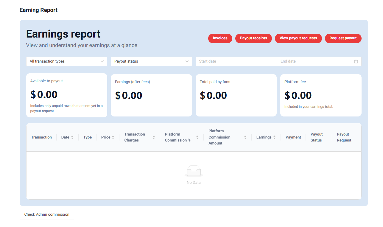 Creators should always be able to clearly understand how their income is generated, what fees apply, and when funds become available for payout. Our latest update introduces a new Earnings Report dashboard designed to make financial reporting simpler and more transparent.